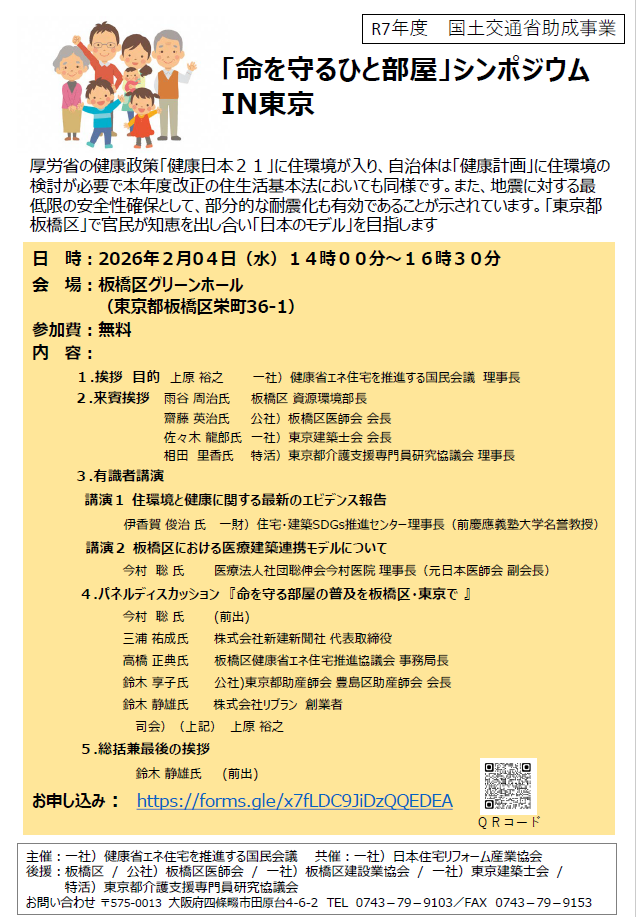2026年2月4日(水)「命を守るひと部屋」シンポジウムIN東京板橋区